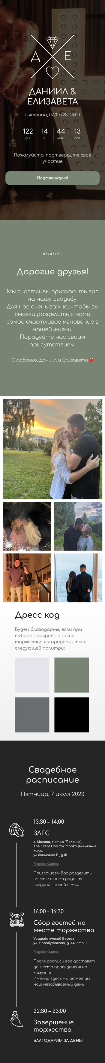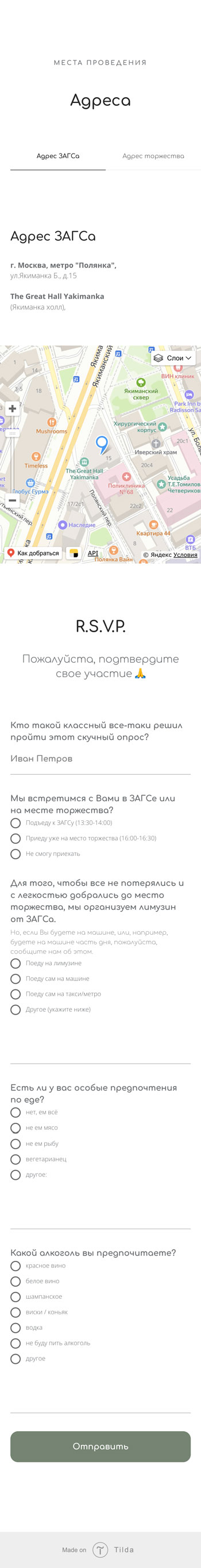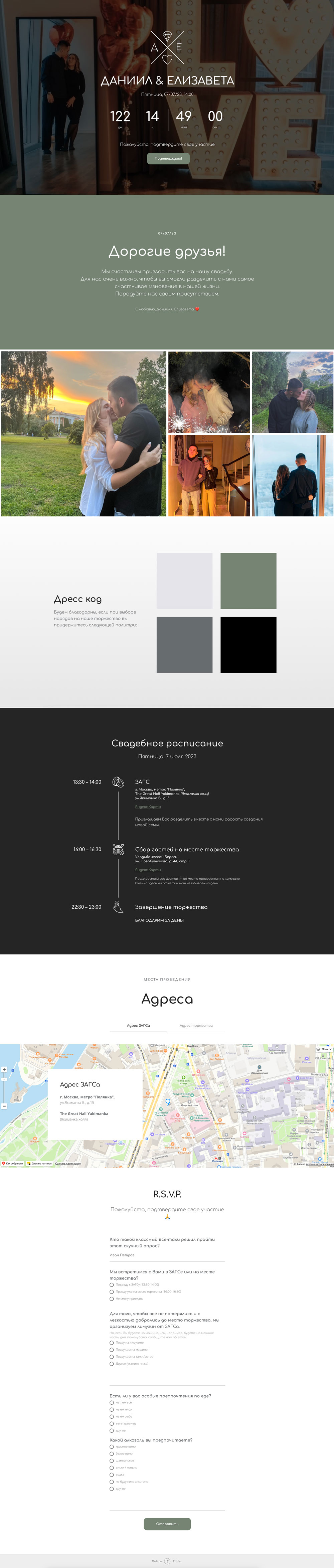 Экспресс-страница за 3 часа с интеграцией формы-опроса, подтверждающей присутствие на свадьбе с импортом данных на email, в таблицу и телеграм.